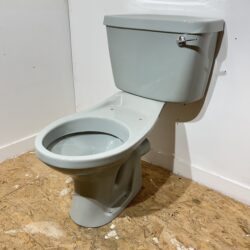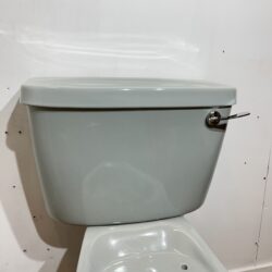 Retro close coupled toilet pan and cistern made by Armitage Shanks in the colour Oyster. This toilet set is dated from the 1980s and is in the Armitage Shanks exclusive colour ‘Oyster’, which is a greyish blue colour.