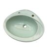 Armitage Shanks inset vanity basin with 1 tap hole. This Armitage Shanks basin is the Orbit model in Wild Sage, a dark green colour made in the 1980s. The Orbit was also a very popular model of basin and was typically installed in domestic homes and hotels.