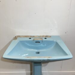 Armitage Shanks inset vanity basin with 1 tap hole. This Armitage Shanks basin is the Orbit model in Wild Sage, a dark green colour made in the 1980s. The Orbit was also a very popular model of basin and was typically installed in domestic homes and hotels.