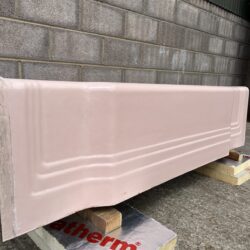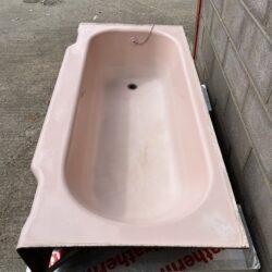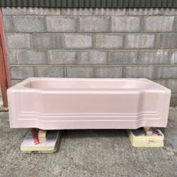 Beautiful curtain sided Art Deco style bath in Coral Pink dating from the 1950s. This bath is made to fit between two walls and would have had wall mounted taps with spout when installed. Overall condition is very good with no chips, could do with re enamelling however which can be provided at an extra cost.
