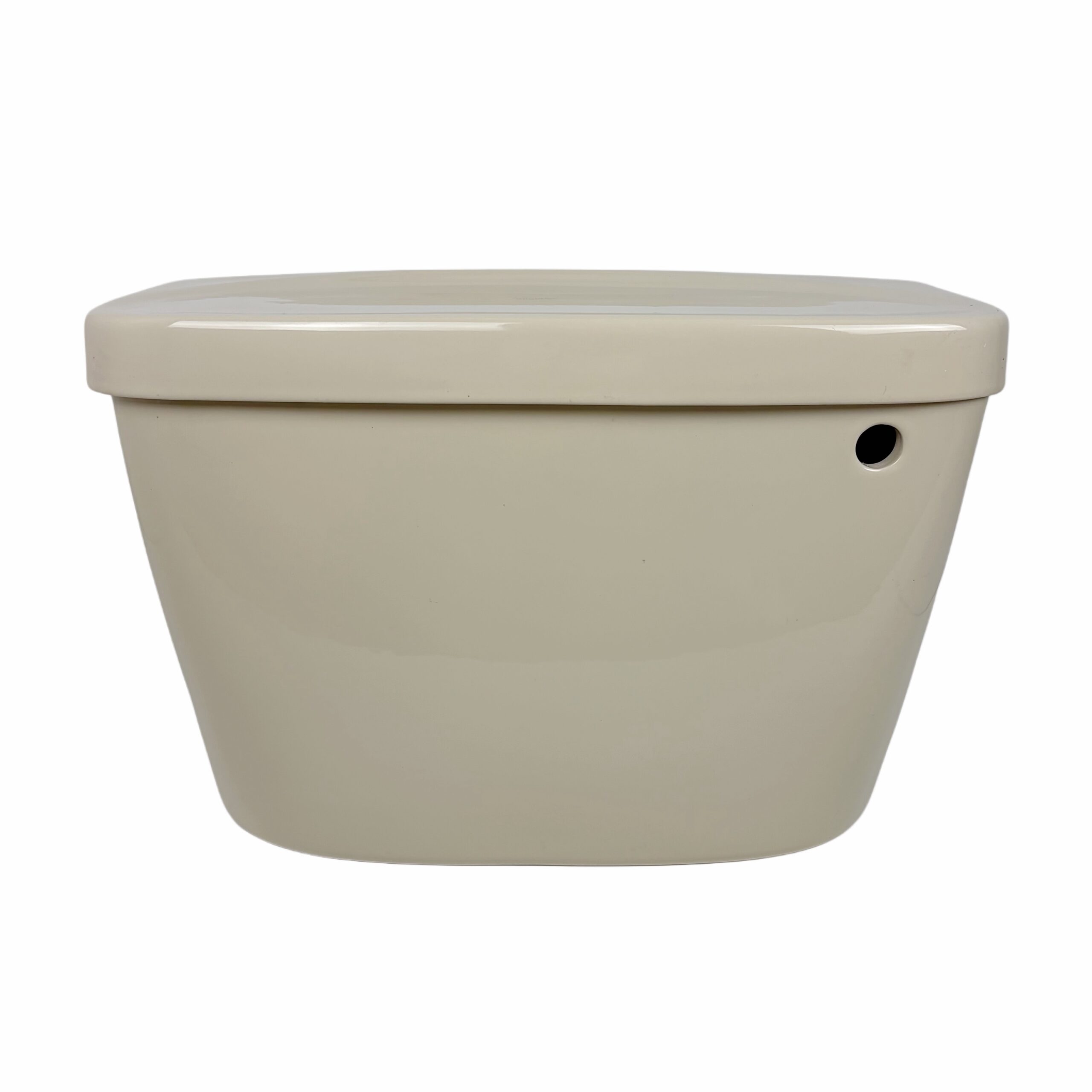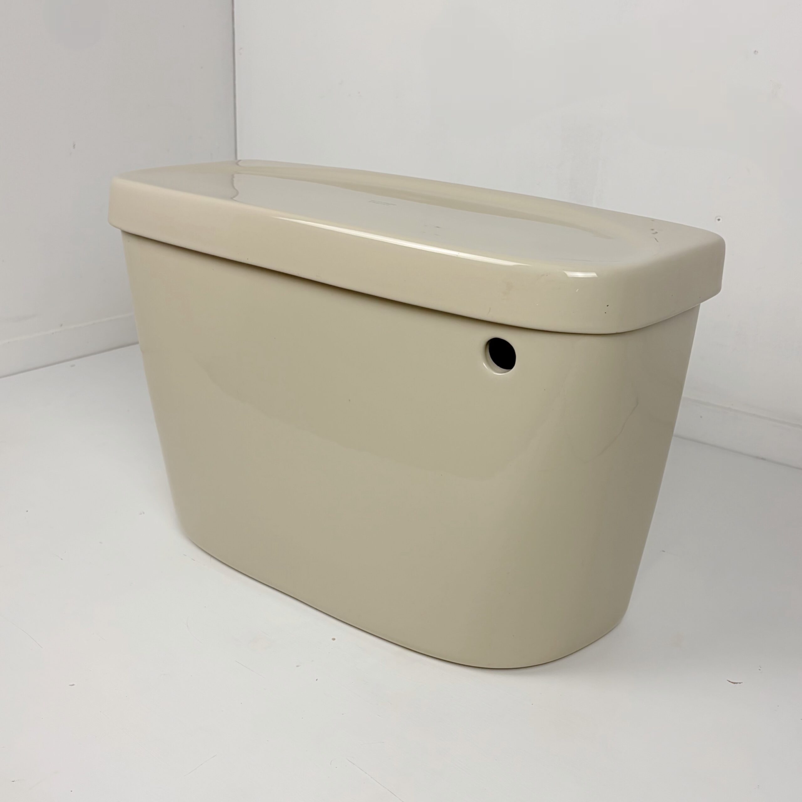 Genuine Armitage Shanks Kensington toilet cistern in the discontinued bathroom colour Champagne. This cistern is ideal if you are looking to replace a broken Armitage Shanks cistern in Champagne, this particular cistern has a bottom inlet and was used on close coupled toilet models such as the Kensington, Wentworth and Sandringham. Dating from the 1980s this cistern is reclaimed but has been fully restored to a like new condition. Included in price is the cistern and the matching cistern lid. Internal fittings and chrome handle can be provided at a cost of £30.