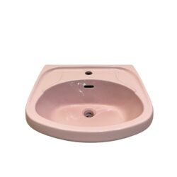 Shires pedestal washbasin only which is part of the Naiad range in the exclusive Shires colour Chiffon Pink. The Naiad was a popular budget friendly bathroom set made by Shires from the late 1970s up to the 1990s when it was at its most popular. This particular basin is new old stock so has never been used and is in immaculate overall condition. There is only one tap hole which will allow for one mixer tap to be fitted when the basin is installed. Note that this basin is only for use on pedestals and for sale is just the basin as seen, not the matching pedestal. Manufacturing code on the underneath of this particular basin is BS5506/3.