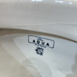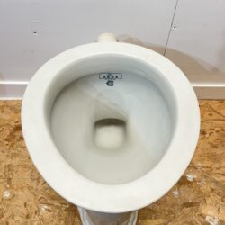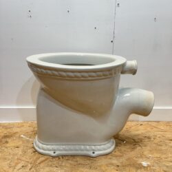 Antique white toilet pan with patterned rope style effect. This toilet pan is stamped as ‘The Aqua’ and was made by Samuel Gratrix Ltd in the early 1900s. Samuel Gratrix Ltd were a builders merchants and manufacturers of sanitaryware and plumbing fittings based in Manchester, England. This toilet would be ideal if you are looking to add a period feature to your bathroom suite or downstairs cloakroom. The toilet is P trap making it easy to install and would suit a high level cistern. The pan has no chips or cracks and is in immaculate condition considering its age.