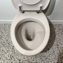Very small marks on bottom of pan which are pictured, however these are hardly noticeable and the overall condition of the toilet pan is very good.