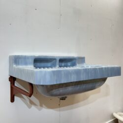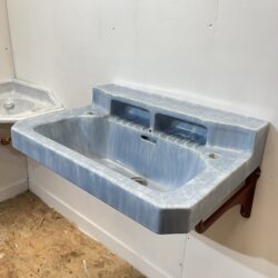 This basin dates from the 1930s and is one of the first examples of coloured sanitaryware. It is in very good overall condition with very limited crazing and no major chips or cracks. Slight chip on the front of the basin above the soap recess but this is not particularly noticeable.