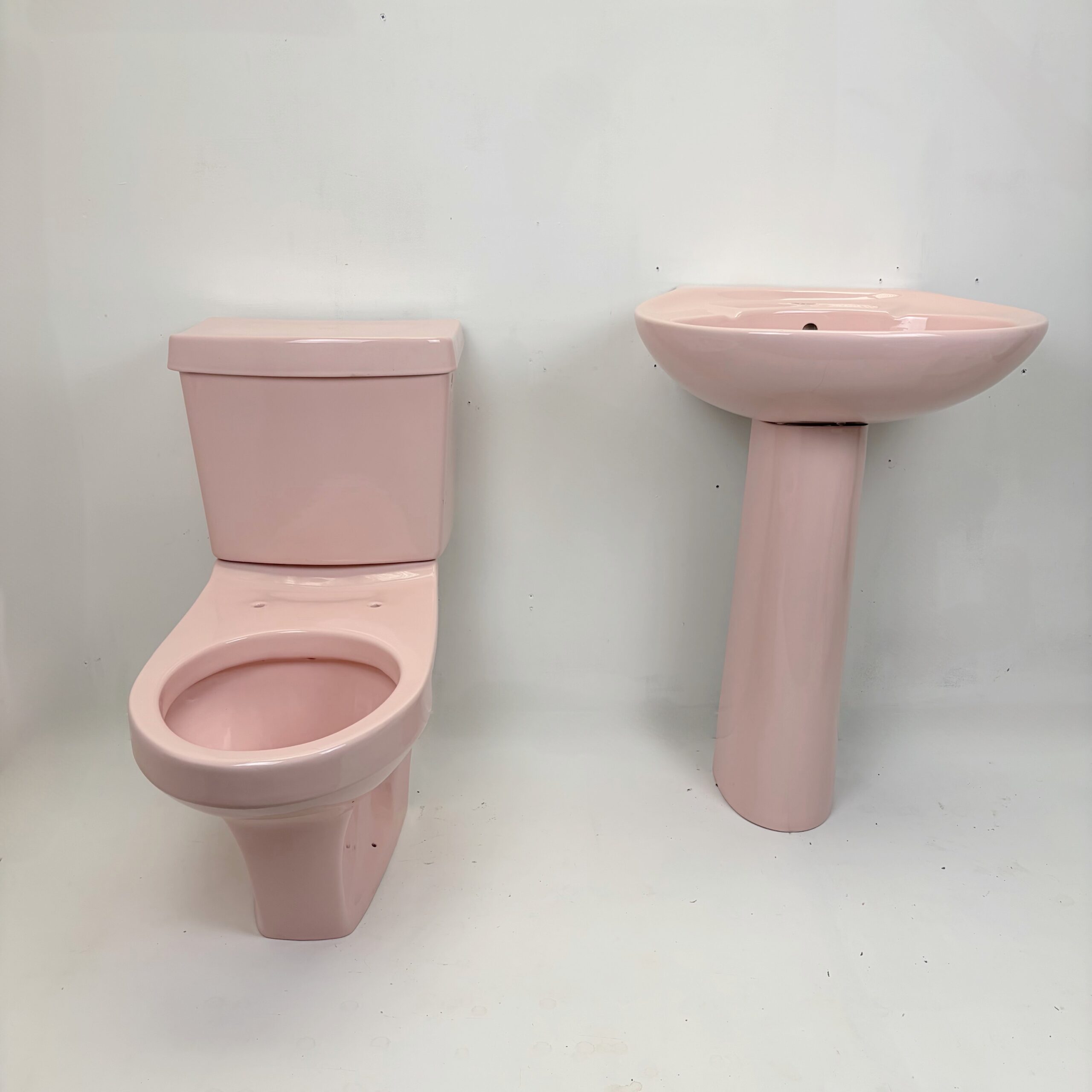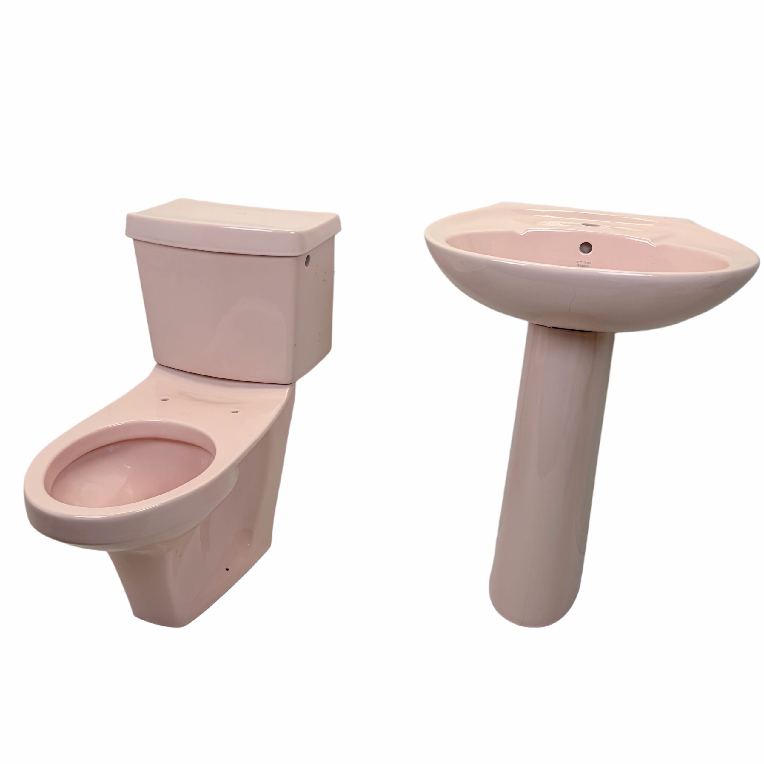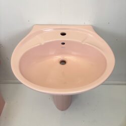 Brighten up your home with this retro pastel pink toilet and sink suite made by Armitage Shanks dating from the 1980s! This colourful bathroom suite is in the colour Rosé which was exclusive to Armitage Shanks and produced in the 1980s and 1990s when pastel shades became the number one choice for coloured bathroom ware.