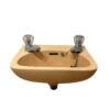 Twyfords Mina cloakroom handwash basin in the distinctive colour of Pampas, which is a light sage green colour popular in the late 1960s, 70s and 80s. This basin would be ideal in a small downstairs toilet and is ideal for replacement purposes or if you are looking to add some retro colours to your cloakroom. If you are looking to replace a Pampas basin, this basin will go with bathroom fixtures also in the colour Pampas made by different companies such as Royal Doulton, Shires, Johnson Brothers, Armitage Shanks, Ideal Standard or Allia.