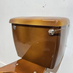 Here we have a unique close coupled toilet pan and cistern in a very retro 2 toned tan and brown colour. There is no indication as to who this toilet is made by, however it is most likely an import from the continent.