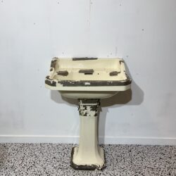Both toilet and sink are reclaimed but in good condition, there is a slight chip underneath the toilet cistern lid, which when fitted is hardly noticeable and a very small chip to the toilet pan, which again is hardly noticeable