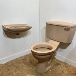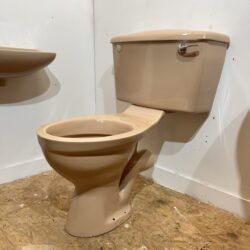 Retro close coupled toilet and basin cloakroom set in the colour Whisky. Whisky is a warm and rich toned colour with an amber hue, making it an ideal colour if you are looking to re create a retro bathroom suite and are looking for subtle colour tones.