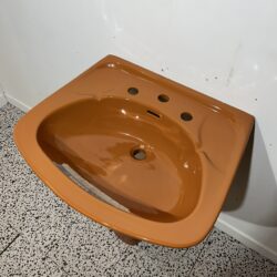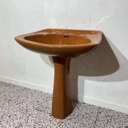 Retro Shires basin and pedestal in Autumn Tan. Very rare and desirable colour from the 1970s, this basin and pedestal are new old stock so have never been in use and are in very good overall condition.