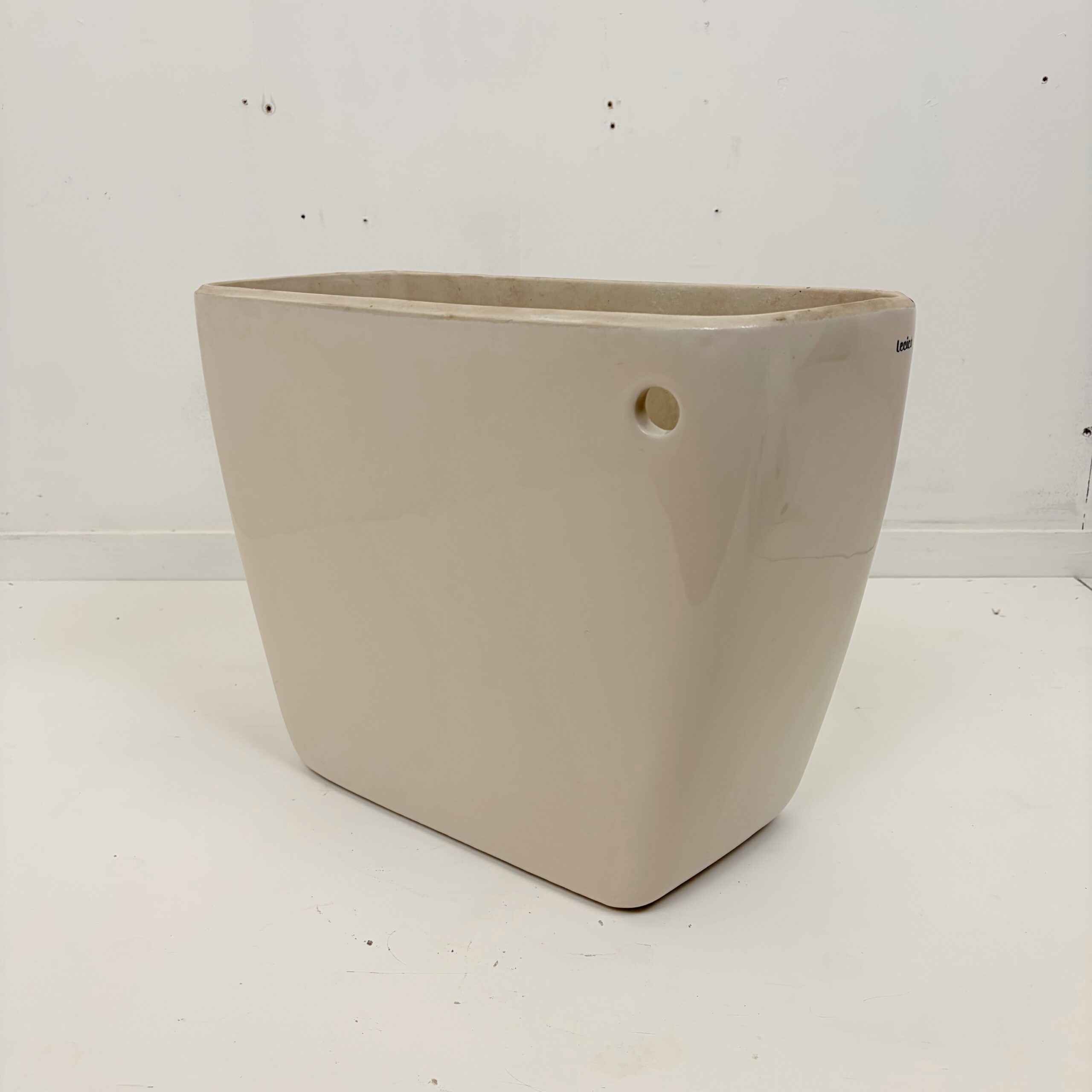 Lecico toilet cistern in the discontinued colour Soft Cream, this cistern is part of the Lecico Atlas range. It is suitable for low level or close coupled Atlas WCs dating from the late 1990s to early 2000s. The cistern is a side inlet and side outlet version, internal fittings and lid are not supplied in the cost. The Lecico Atlas was a popular model in the 1990s and 2000s and was often installed in homes, public buildings and static caravans.