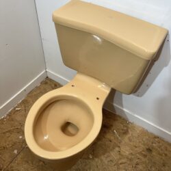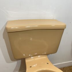 1970s close coupled Armitage Shanks toilet in the beautiful retro colour ‘Sun King’. This retro toilet is reclaimed but has been fully restored to a high standard and is in good overall condition. There is a slight mark around the side of the bowl which is a manufacturing fault, however this is not noticeable once installed and does not affect the performance.