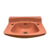 Retro new old stock basin and pedestal with 2 tap holes made by Twyfords Bathrooms in the colour Tahiti. This sink is from the Twyfords Nocturne range, a popular model in the 1980s and in the vibrant colour of Tahiti Pink, inspired by the lush island of Tahiti in Polynesia. Ideal to be used for replacement purposes or if you are looking to create a retro inspired pink bathroom. Tahiti pink toilet also available.
