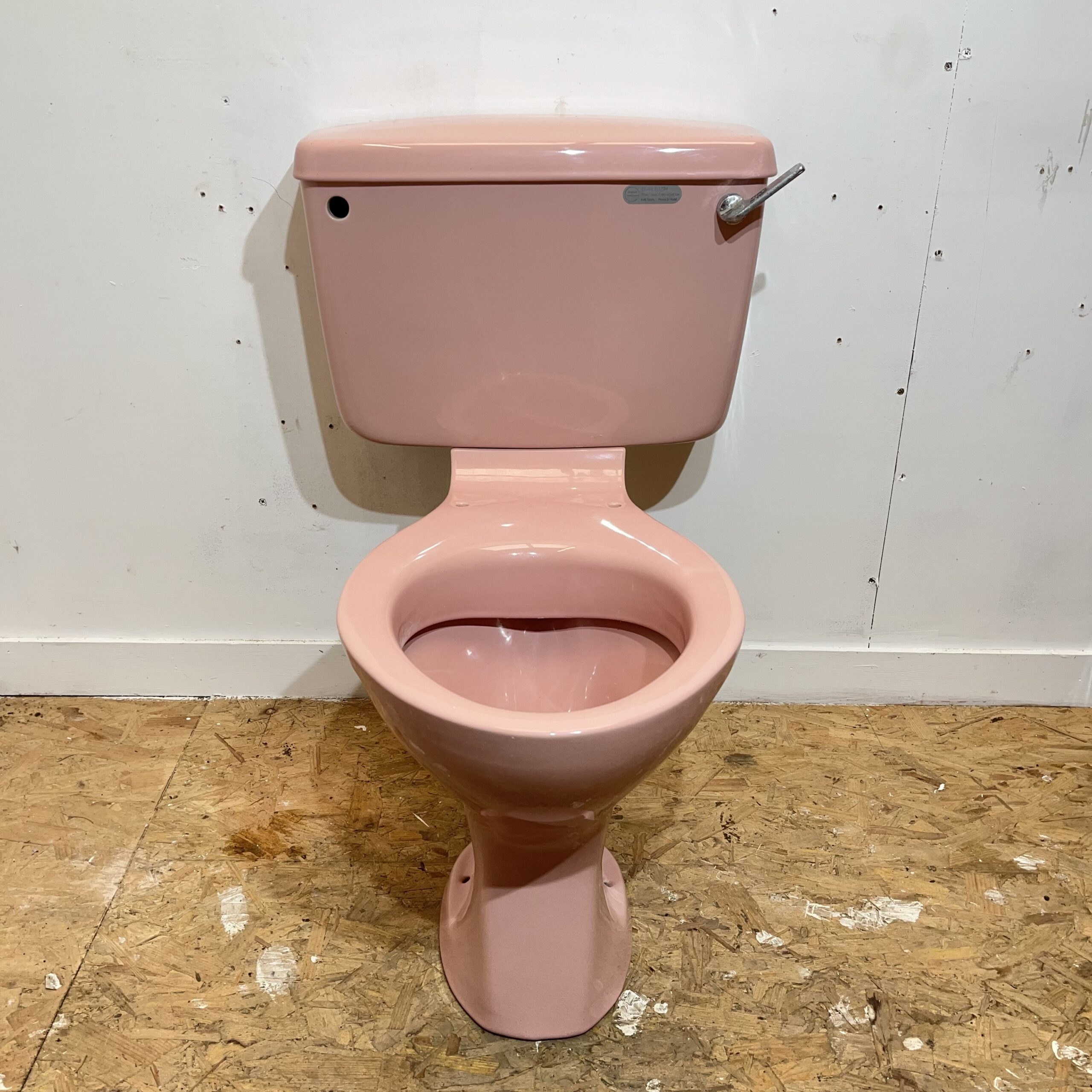 Twyfords close coupled toilet in the glorious retro colour of ‘Tahiti’. This Twyfords toilet is part of the Nocturne range which was made in the 1980s and is also in the exclusive pink colour of Tahiti which was only produced by Twyfords for a very short period of time from 1986 to 1990. This toilet is reclaimed but has been fully restored to a like new condition, there is also no chips, cracks or damage to the glaze. Matching sinks in Tahiti also available if you are looking for a complete set in this colour.