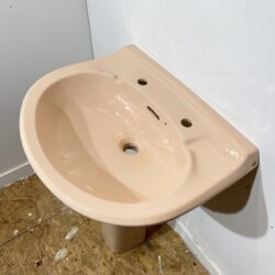 Trent Bathrooms 2 piece basin and pedestal in the colour Peach. Peach was a popular bathroom colour in the 1990s and is also an ideal coloured bathroom piece if you are looking to add warm, subtle colours to your bathroom or cloakroom suite.