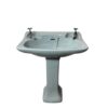 Basin has 3 tap holes so a modern mixer tap can be used or 2 separate hot and cold taps with a chrome plug used in the middle hole. The basin is reclaimed so has a few age related marks but has been fully restored and is in very good condition considering its age.