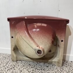 Stylish countertop vanity basin known as the ‘International’ made by Twyfords Bathrooms dating from the early 80s. This basin is in Damask, which is a rich red colour, similar to Burgundy however slightly less ‘Red’ and a more subtle tone. The international basin is to be used on a vanity unit and is semi recessed as there is a ceramic lip on the front of the basin. Could be used as part of a coloured bathroom set or if you are looking to replace a broken Twyfords International basin in Damask.