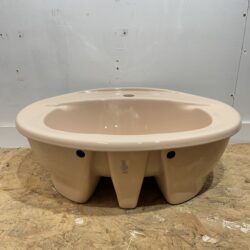 Inset vanity unit basin made by Twyfords Bathrooms in the colour Peach, dating from the late 1980s to early 1990s. This basin is the Rhapsody model, a popular bathroom range made by Twyfords Bathrooms commonly installed in homes and hotels. This basin would be ideal to be used for replacement purposes or if you are looking to create a peach coloured bathroom suite.