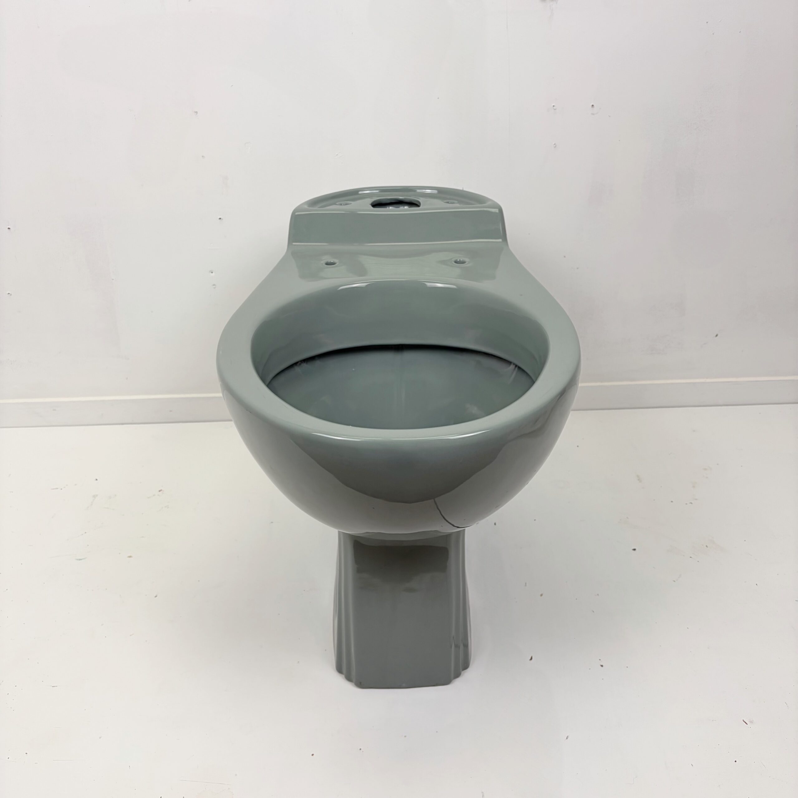 Close coupled toilet pan in the colour Wild Sage, also known as Sage Green. This particular toilet pan is made by Springs and can be used as a like for like replacement or with other toilet cisterns in Wild Sage. Wild Sage was a popular bathroom colour in the 1980s and was made by companies such as Armitage Shanks, Royal Doulton, Trent, Qualcast and Springs.